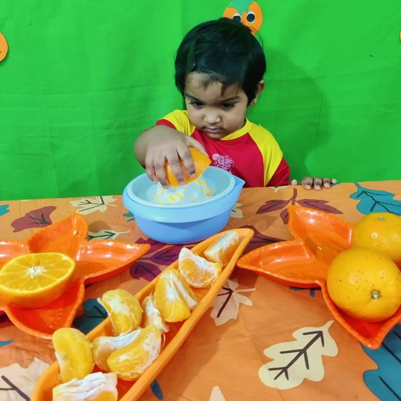 This hands-on activity not only delighted their taste buds but also helped develop their fine motor skills, hand-eye coordination, and sensory awareness. As they squeezed the juicy oranges with excitement, they learned about healthy eating and the benefits of fresh fruits.